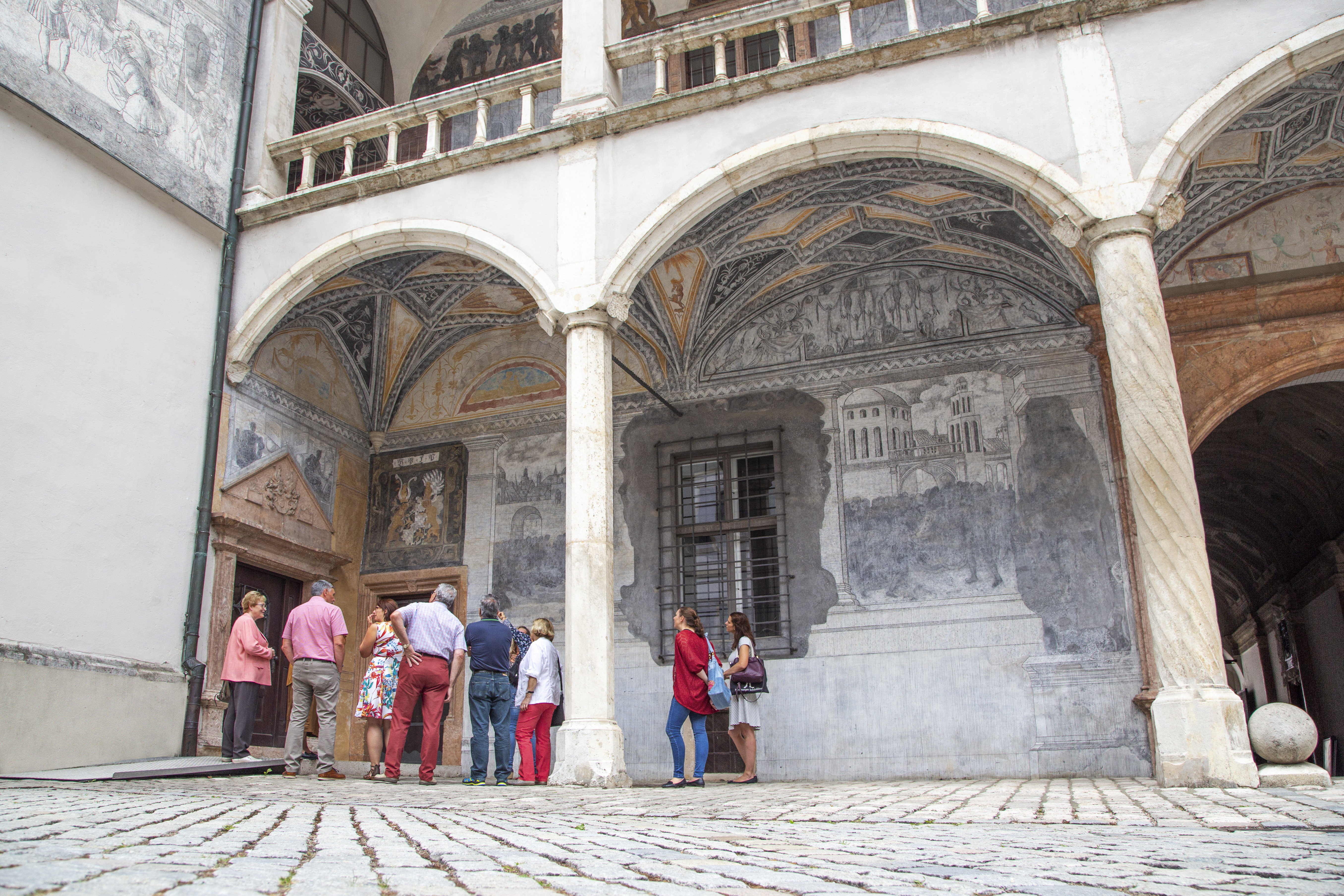 <p style="text-align:justify">Sie entdecken die historische Altstadt mit ihren vielen kleinen, malerischen Gassen. Sie erfahren interessantes über die Sgraffiti-Kunst im Schlossinnenhof und werden durch die eindrucksvolle Schlosskapelle geführt. Außerdem besichtigen Sie die prächtige Hofkirche mit ihrer imposanten Fassade am schönen Karlsplatz umgeben von Bürger- und Patrizierhäusern. Als besonderes Highlight besuchen Sie am Ende dieses Spaziergangs noch die Provinzialbibliothek.</p> <p style="text-align:justify"><em>Auf Wunsch erhalten Sie auch einen Einblick in unserem Rathaus und erfahren interessante Geschichten des Gebäudes und können die wunderschön dargestellten Rathausgemälde bestaunen.</em></p> <h3 style="text-align:justify">Höhepunkte</h3> <ul> <li style="text-align:justify">Schlosshof</li> <li style="text-align:justify">Schlosskapelle</li> <li style="text-align:justify">Hofkirche</li> <li style="text-align:justify">Karlsplatz</li> <li style="text-align:justify">Barocke Patrizierhäuser</li> <li style="text-align:justify">Provinzialbibliothek</li> <li style="text-align:justify"><em>Rathaus (auf Wunsch)</em></li> </ul> <h3>Anmeldung</h3> <p>Tickets werden einzeln vergeben, bitte melden Sie jeden Teilnehmer einzeln an.<br /> Wird bei Verfügbarkeit <strong>Auf Anfrage buchbar</strong> angezeigt, ist eine Anmeldung nur noch telefonisch über die Tourist-Information möglich.</p> <h3>Treffpunkt</h3> <p>Tourist-Information<br /> Ottheinrichplatz A 118<br /> 86633 Neuburg an der Donau</p> <h3>Zeitraum</h3> <p>jeden Sonntag und Feiertag um 14:30 Uhr<br /> (Führungen von Ostersonntag bis 1. November)</p> <h3>Dauer</h3> <p>90 Minuten</p>