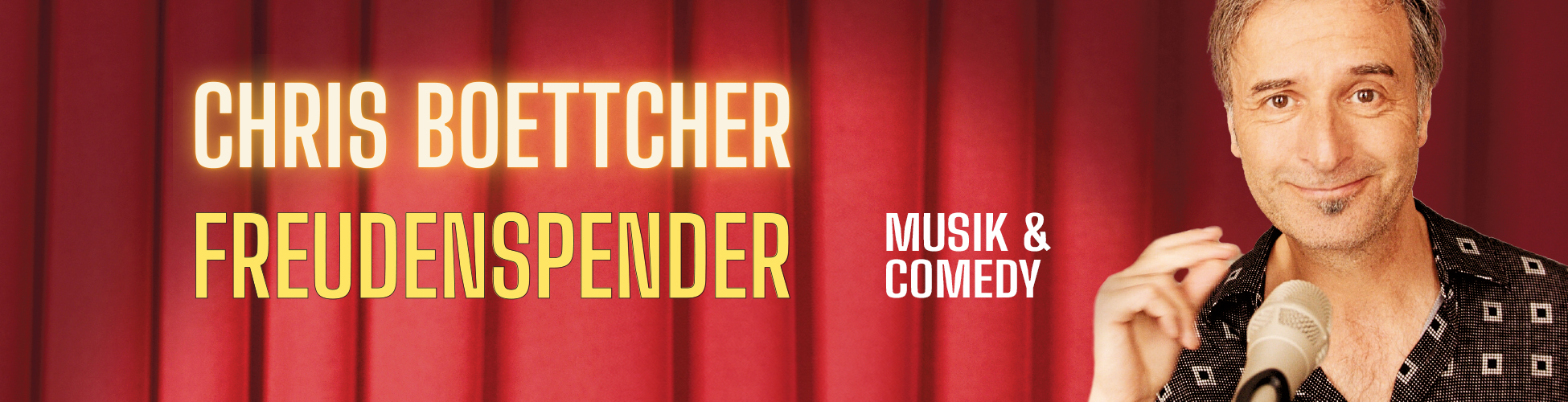 <p style="text-align:justify">Chris Boettcher, der wohl vielseitigste bayerische Musik- und Comedy-Entertainer präsentiert seine neue Show:</p> <p style="text-align:justify">FREUDENSPENDER</p> <p style="text-align:justify">„Das Leben ist das was Dir passiert, während Du dabei bist, ganz andere Pläne zu schmieden!“ John Lennon</p> <p style="text-align:justify">Tja, man braucht für's Leben schon eine geballte Dosis Humor. Und die gibts jetzt: als schnell wirksames Wohlfühl-Destillat in hochdosierter Konzentration, Gratis-Zwerchfell-Massage inbegriffen.</p> <p style="text-align:justify">Kooperation zwischen dem ACKER Event Forum und freilicht e.V. – Genießen Sie gemeinsam mit uns einen lustigen Kabarett-Abend.</p> <h4><br /> Tickets</h4> <p>Direkt unter <a href="https://www.theos-tickets.de/de/" tabindex="-1">www.theos-tickets.de</a> oder vor Ort an der <strong>Rezeption des Acker Hotels </strong>und <strong>Ideenquell, Rosenstraße 12 in Neuburg an der Donau</strong></p> <h4><br /> Einlass</h4> <p>ab 19:00 Uhr</p>